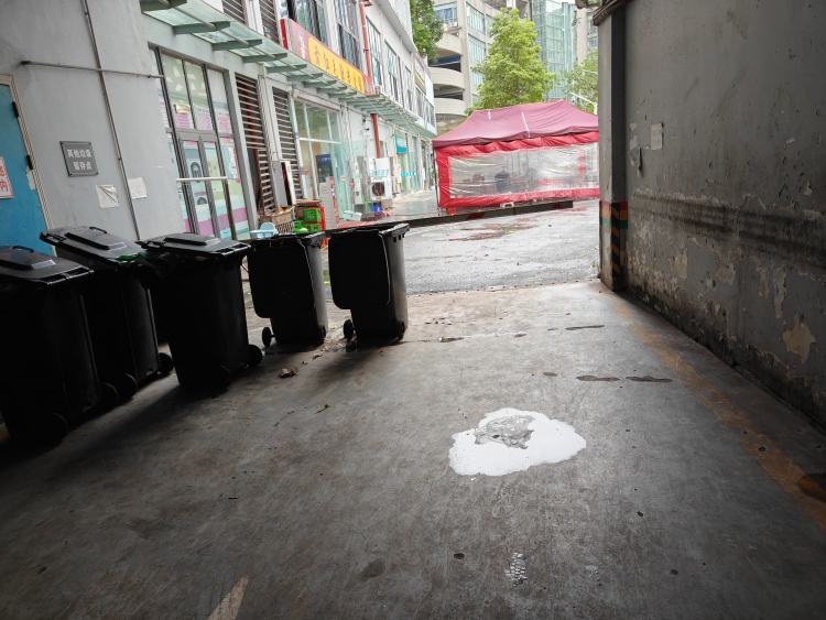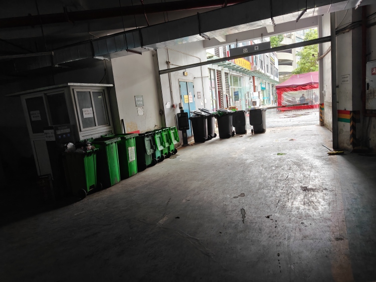 第一:这是周边商户产生的垃圾为什么存放在居民车库出入口?商户的垃圾不应该存放在各自的门口吗?