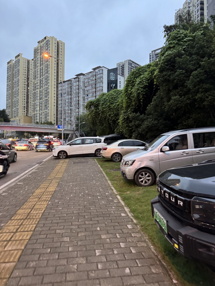九龙坡区印江洲小区,石杨路这边门口严重违规占用人行道,盲道停车,已经很久了,以前停在绿化里面都都可以算了,不影响行人走路,现在直接人行道上停满,不敢想象老人,小孩路过是否有安全隐患了,特别是下雨天,如果可以停,他们留一条路也行,今天看了好几个下去公交车道过去再上来人行道的了。希望尽快解决。