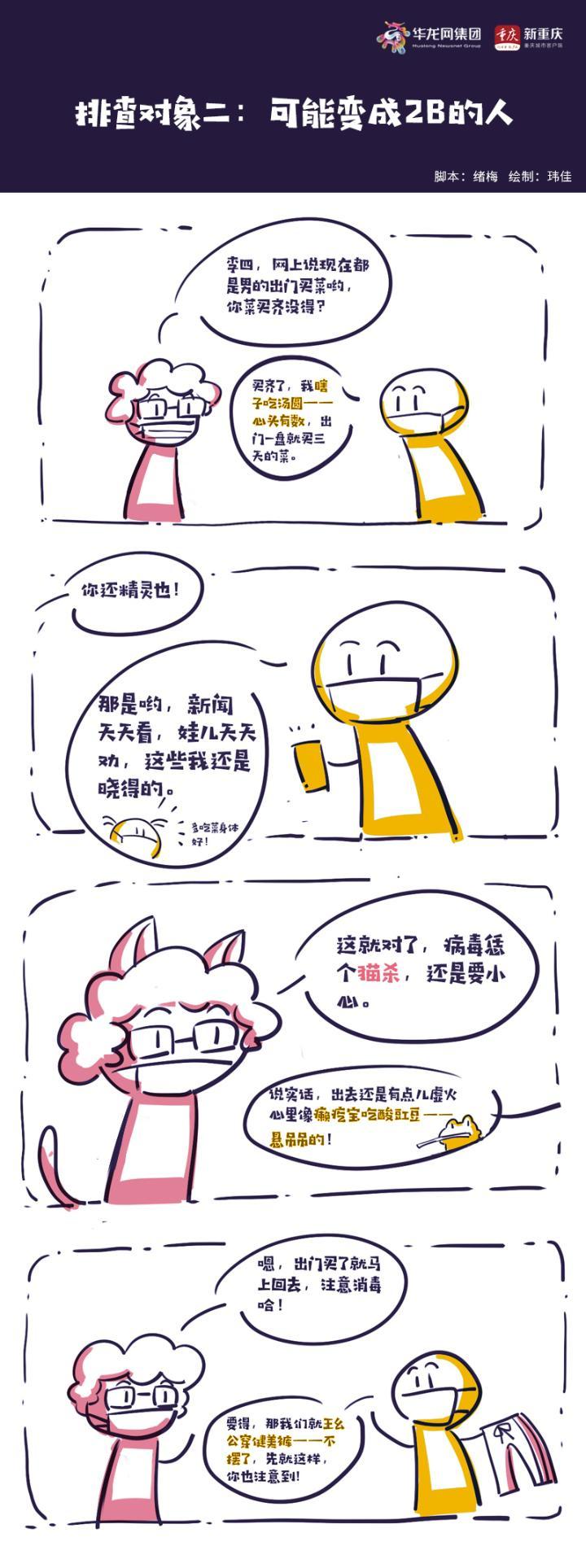 与此同时,广大网友也发挥聪明才智,各种“段子”、手绘、顺口溜,提醒大家少出门,少聚会,戴口罩,勤洗手。这不,重庆“土味”歇后语也被安排上了。不信,你看宅在家为社会做贡献的“闲人马大姐”,开展的系列“排查工作”就清楚了!